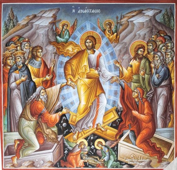 Λυτρώθηκαν όλοι οι δίκαιοι που τους είχε καταπιεί ο θάνατος· διότι έπρεπε Αυτός που προφητεύθηκε και κηρύχτηκε Βασιλιάς του ουρανού και της γης από τους δικαίους αυτούς και τους Προφήτες, Αυτός να γίνει και ο Λυτρωτής όλων αυτών των καλών και πιστών κηρύκων Του. Έπειτα καθένας από τους δικαίους εκείνους έλεγε: «Ποῦ σου, θάνατε, τὸ κέντρον; ποῦ σου, ᾅδη, τὸ νῖκος;(:Πού είναι, θάνατε, η νίκη σου; Πού είναι, άδη, το κεντρί σου;)» [Α´ Κορ. 15, 55]. Μας λύτρωσε λοιπόν Αυτός, που νικώντας εσένα χάρισε τη νίκη και σε όλους εμάς.