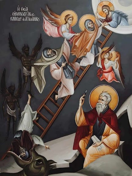Στὴν καρδιὰ τῆς ἐκκλησιαστικῆς ἀσκητικῆς παράδοσης χτυπάει ἡ περίφημη «Κλίμακα». Κορυφαῖο βιβλίο ἀναφορᾶς γιὰ τὴν ὀρθόδοξη πνευματικότητα, ἀξεπέραστο ἐδῶ καὶ χίλια πεντακόσια χρόνια, γραμμένο ἀπὸ ἕναν ἀσκητή-ὁρόσημο, τὸν ἅγιο Ἰωάννη ἡγούμενο τοῦ Σινᾶ. Εἶναι τόσο σπουδαία ἡ μορφή του καὶ ἡ πνευματική του σοφία ποὺ μὲ χαρισματικὸ τρόπο ἀποτυπώνεται στὸ ἐν λόγῳ σύγγραμμά του, ποὺ ἡ Ἐκκλησία τὸν προβάλλει ἐν μέσῳ τῆς Μεγάλης Σαρακοστῆς σὰν διαχρονικὸ πρότυπο πνευματικῆς ζωῆς (Κυριακὴ Δ΄ Νηστειῶν).