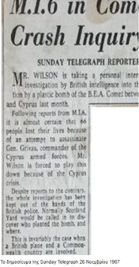 Γι΄αυτό θα ήθελα να συμπληρώσω ότι τέτοια ήταν η ανησυχία της χουντικής κυβέρνησης, όπως διαβάσαμε στα βρετανικά έγγραφα που είχε μάλιστα ζητήσει (η χούντα) από τους Βρετανούς ερευνητές αν ήταν δυνατό να δήλωναν άλλους λόγους όπως ότι ο Κομήτης …συγκρούστηκε με άλλο αεροπλάνο κατά προτίμηση τουρκικό!…