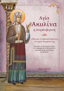 Οἱ συναντήσεις ποὺ οἰκονομεῖ ἡ Κυρία Θεοτόκος νὰ ἔχῃς στὸ περιβόλι της χαράσσονται παντοτινὰ καὶ ἄσβηστα μέσα σου. Τότε ἐκεῖνο τὸ φθινοπωρινὸ ἀπόγευμα ἦταν, ποὺ πρωτοσυναντήσαμε τὴν νεότατη καὶ ἀνδρεία Ἀκυλίνα ἀπὸ τὸ Ζαγκλιβέρι. Κύλησαν ἀρκετὰ χρόνια καὶ ἀδελφός-συνοδοιπόρος, μᾶς ἔστειλε εὐλογία ἕνα μικρὸ βιβλίο μὲ τὸν θαυμαστό της βίο καὶ τὴν πολὺ πρόσφατη ἐμφάνιση ἀποκάλυψή της.