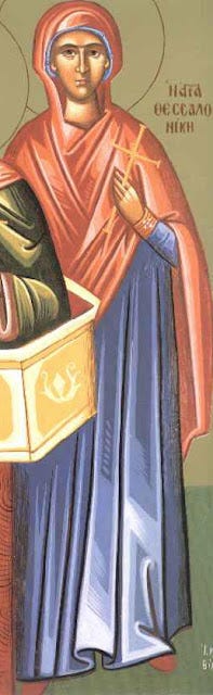 Ἡ Θεσσαλονίκη ἦταν κόρη ἐνὸς ἱερέα τῶν εἰδώλων, ποὺ ὀνομαζόταν Κλέων καὶ ἦταν ἀρκετὰ πλούσιος. Ὅταν ἔμαθε ὅτι ἡ κόρη του ἔγινε χριστιανή, θερμὰ τὴν παρακάλεσε νὰ ἀρνηθεῖ τὸν Χριστό, πράγμα ποὺ δὲν κατόρθωσε.