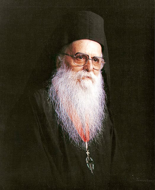Όπως διηγούνται οι υποτακτικοί του είχε παρακαλέσει την Παναγία να έχει τα λογικά του έως τέλους για να μην κουράσει κανένα. Πράγματι είχε διαύγεια μέχρι την τελευταία αναπνοή του. Είπε τρεις φορές: «Άγιε Νεκτάριε, βοήθει μοι» και εξέπνευσε. Μία γλυκύτητα ήταν ζωγραφισμένη στο πρόσωπό του, νόμιζες πως κοιμόταν γαληνά. Ανεπαύθη στις 7 Δεκεμβρίου 1991 μ.Χ. Ο βιογράφος του Γέροντας Θεόκλητος Διονυσιάτης τον χαρακτηρίζει· σεμνό και άριστο υμνογράφο, σπάνια προσωπικότητα και αληθινό άνθρωπο του Θεού. Ο αρχιμανδρίτης Γεώργιος Χρυσοστόμου λέει ότι ο Γέροντας ήταν εξέχουσα μορφή τού αγιορειτικού μοναχισμού, κορυφαία, διάσημη, χαρισματική και μοναδική. Έφυγε με τ’ όνομα του θαυματουργού αγίου Νεκταρίου στα χείλη του, στον οποίο είχε συνθέσει μία από τις ωραιότερες ιερές ακολουθίες του.