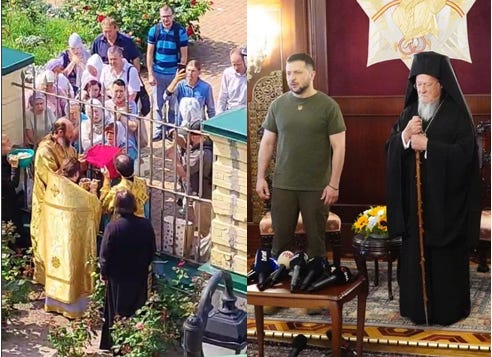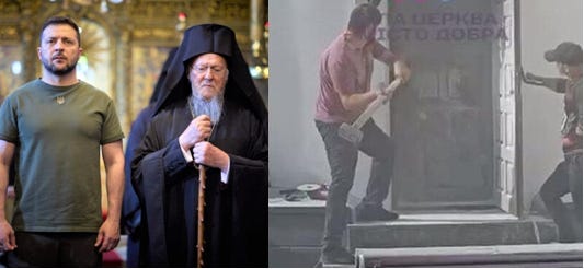 Ὁ Ζελένσκι στὸν Πατριαρχικὸ Ἱ. Ν. Ἁγ. Γεωργίου, ἐνῶ τὴν ἲδια ὣρα στὸ Κίεβο “πιστοὶ” τῆς “Αὐτοκέφαλης” “Ἐκκλησίας” καταλαμβάνουν μὲ βαριοποῦλες Ἱ. Ναὸ.
