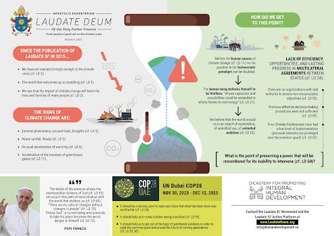«Δεν αντιδρούμε αρκετά, καθώς ο κόσμος που μας υποδέχεται καταρρέει και ίσως πλησιάζει σε ένα οριακό σημείο», είπε ο Φραγκίσκος στις εναρκτήριες γραμμές του δεύτερου οικολογικού του κειμένου – The Apostolic Exhoration Laudate Deum, το οποίο έρχεται ως συνέχεια του 2015 εγκύκλιος Laudato Si'.