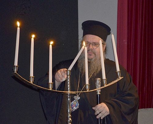 Σέ προηγούμενη εὐκαιρία, πρό πενταετίας, δέν δίστασε μάλιστα νά ἀνάψει τήν ἐπτάφωτη ἑβραϊκή λυχνία, σέ τελετή μνήμης καταφρονώντας καί ἄλλους Ἱερούς Κανόνες (Ο΄ καί ΟΑ΄ Ἀποστολικούς) ὅπου σαφῶς ἀναφέρεται: «Εἴ τις Χριστιανός ἔλαιον ἀπενέγκοι εἰς ἱερόν ἐθνῶν, ἤ εἰς συναγωγήν Ἰουδαίων ἐν ταῖς ἑορταῖς αὐτῶν, ἤ λύχνους ἅπτοι, ἀφοριζέσθω». Ἴσως καί σ’ αὐτήν τήν περίπτωση θά ἐπέλεγε μιά ἐρμηνεία ὥστε νά μήν ἐμπίπτει στόν Κανόνα· κάτι τοῦ τύπου: «Ναί, τήν ἄναψα, ἀλλά ὄχι μέσα στή συναγωγή».