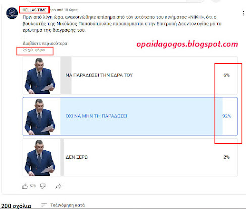 Η διαγραφή Παπαδόπουλου ΞΥΠΝΗΣΕ τη λαϊκή ΟΡΓΗ ενάντια στην κομματικοκρατία. 91% λένε ΝΑ ΜΗΝ παραδώσει την έδρα του. Μόλις 4% να την παραδώσει!