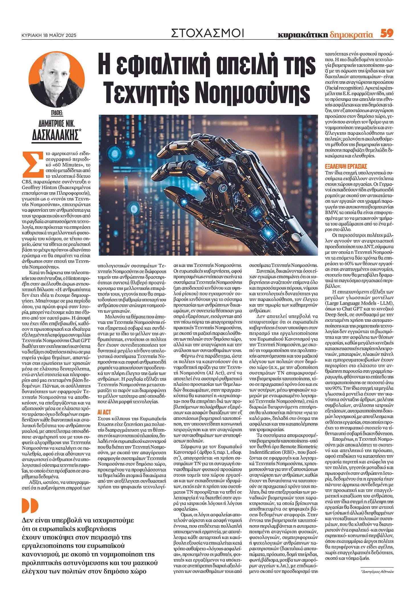 Δημήτρης Δασκαλάκης: Η εφιαλτική απειλή της Τεχνητής Νοημοσύνης