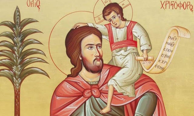 Ο Άγιος Χριστόφορος φορτωνόταν στους ώμους του τον αναγκεμένο συνάνθρωπο, κι εκείνοι στρογγυλοκάθονται στο σβέρκο του Χριστιανού, χλευάζοντας την πίστη του.