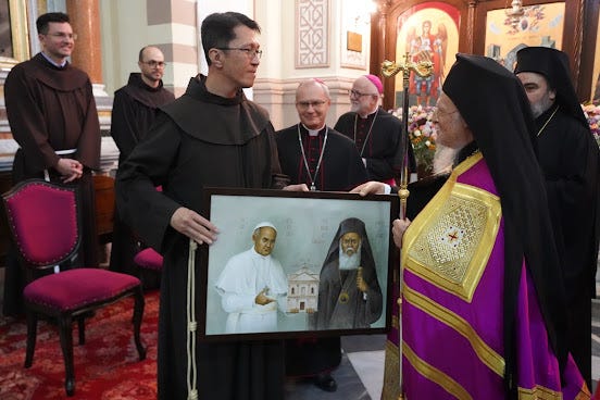 3. Την ίδια ώρα ο Πατριάρχης Βαρθολομαίος ακούει τον μητροπολίτη Σμύρνης να αναφέρεται στον «Αγιότατο Πάπα Ρώμης», καθώς συμπροσεύχονται σε κοινό εσπερινό με παπικούς ... (την είδηση διαβάσαμε εδώ).
