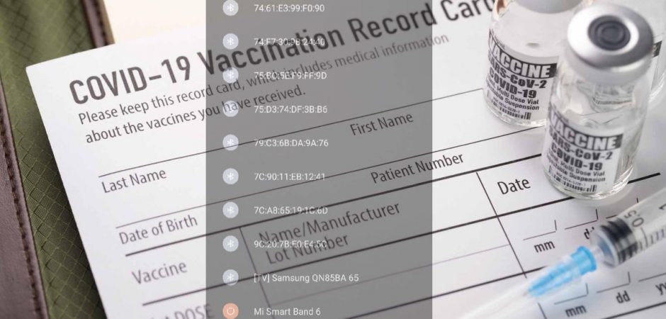 Θυμάμαι τότε, είχα επιχειρήσει να δοκιμάσω το ίδιο, με γνωστούς ή συναδέλφους που γνώριζαν ότι είχαν εμβολιαστεί, χωρίς όμως αποτέλεσμα, αφού δεν εμφανίζονταν κανένας δωδεκαψήφιος αριθμός, παρά μόνο κάποια ονόματα συσκευών – τηλεφώνων που είχαν ενεργοποιημένο το Bluetooth.