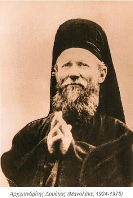 Ήταν εκεί και όταν ο πατήρ Δομέτιος πέθανε από ανακοπή καρδιάς μπροστά στην εκκλησία, στην οποία τελούσε συχνά λειτουργίες. Ήταν τόσο καλός, που μοίραζε στους φτωχούς όλα όσα του έφερναν οι προσκυνητές. Ο πατήρ Βησσαρίων θυμάται ότι, όταν ο πατήρ Δομέτιος πέθανε, δεν είχε ούτε πουκάμισο να φορέσει: