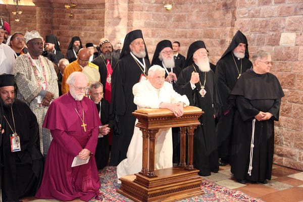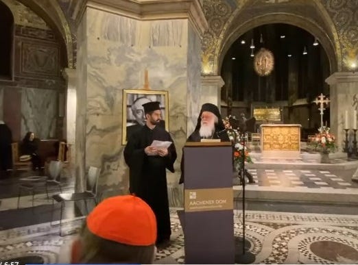 Οὐδείς ἔχει ἐπίσης τό δικαίωμα νά ἀγνοεῖ ὅτι ἔχει διοργανώσει συμπόσια μέ ἀλλοθρήσκους, μέ σκοπό τήν προώθηση τῆς «ειρηνικῆς συνυπάρξεως τῶν θρησκειῶν» καί τῆς διαθρησκειακῆς ψευδοενότητας (πού ὁδηγεῖ στήν κυοφορούμενη παγκόσμια Πανθρησκεία), καί ὅτι συμμετεῖχε ὡς διαθρησκειακός συγκρητιστής σέ πολλά διεθνῆ διαχριστιανικά καί διαθρησκειακά fora, διαμηνύοντας τήν ψευδοένωση τῶν πάντων στό ὄνομα τῆς δῆθεν ἀγάπης. Μάλιστα κατά καιρούς βραβεύτηκε καί γιά ὅλα αὐτά (ἐνδεικτικά μόνο θυμίζω τήν βράβευσή του τό 2020 σέ οἰκουμενιστική τελετή στόν «Καθεδρικό Ναό» τοῦ Aachen, ὅπου παρευρέθηκαν καί Παπικοί, μέ ἐπί κεφαλῆς τόν Πρόεδρο τοῦ «Ποντιφικοῦ Συμβουλίου γιά τήν Προώθηση τῆς Χριστιανικῆς Eνότητος» καρδινάλιο Koch).