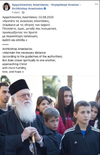 Οὐδείς ἐπιπλέον ἔχει τό δικαίωμα νά ἀγνοεῖ τήν στάση τοῦ ἀρχιεπισκόπου Ἀναστασίου κατά τήν διάρκεια τῆς ψευτοπανδημίας, πού ἦταν πλήρως συμμορφούμενη μέ τήν καθεστῶσα «λογική» τῶν μασκῶν καί τῶν ἐμβολίων, ἐμβαπτίζοντάς την βέβαια καί πάλι μέσα στήν γνωστή μειλίχια ἀγαπολογία.