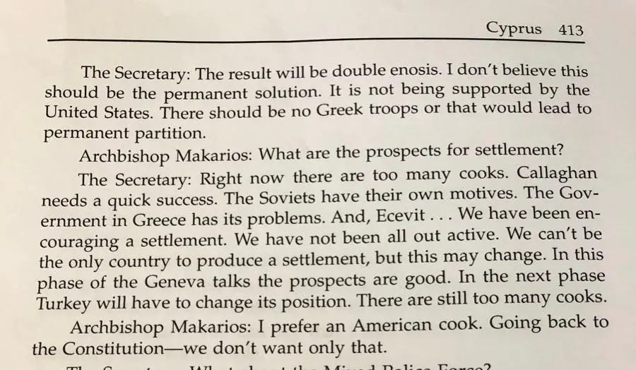 Από τα πρακτικά της συνάντησης 29/7/74 Κίσινγκερ/Μακαρίου η αναφορά Μακαρίου για «Αμερικάνο μάγειρα»