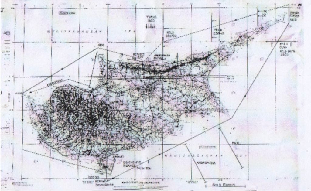 Βρετανικός χάρτης με βρετανικά πλοία να σχηματίζουν κλοιό πέριξ της Κύπρου κατά τις τουρκικές εισβολές (Βιβλίο Φ.Α «Διζωνική vs Δημοκρατία» Λεμεσός 2019).