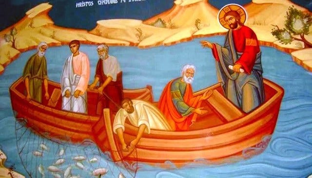 Καὶ ὁ Κύριος, ὅμως, μὲ τὴν σειρά του, ἐπιβραβεύει σύντομα τὴν ἄμεση αὐτὴν ἀνταπόκριση τῶν εὐγενικῶν ξενιστῶν στὴν πρόσκλησή Του. Μετὰ ἀπὸ τὸ πέρας τῆς διδασκαλίας Του πρὸς τὸ πλῆθος, καλεῖ τὸν Πέτρο, -γιατί, ἄραγε, πάλι αὐτόν;- νὰ ὁδηγήσῃ τὸ πλοῖο του καὶ πάλι στὸ βάθος καὶ νὰ ῥίξη τὰ δίκτυα «εἰς ἄγραν». Περίεργη προτροπή! Δὲν ξέρει ὁ Κύριος ὅτι ἡ κοινότητα αὐτὴ τῶν ἁλιέων ὅλη τὴν νύκτα ἐκοπίασαν καὶ «οὐδὲν ἔλαβον»; Καὶ τώρα, μόλις ἔπλυναν τὰ δίκτυά των, νὰ τὰ ξαναρίξουν;