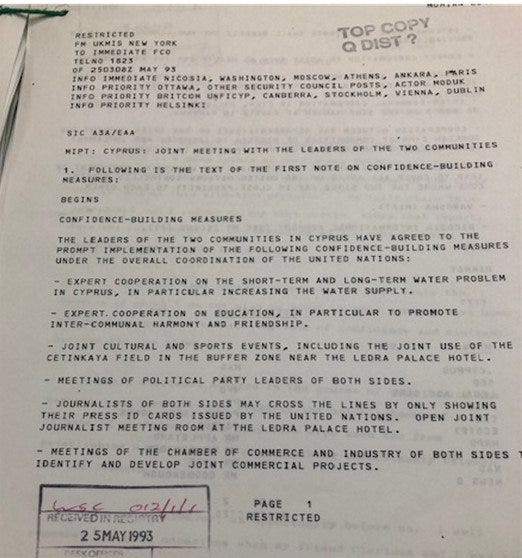 Μέτρα Οικοδόμησης Εμπιστοσύνης και... πιέσεων, AΠΟΔΕΣΜΕΥΣΗ ΒΡΕΤΑΝΙΚΩΝ ΕΓΓΡΑΦΩΝ ΓΙΑ ΤΟ 1993/94 (http://www.sigmalive.com/simerini/politics/546901/metra-oikodomisis-empistosynis-kai-pieseon 30.12.2018).