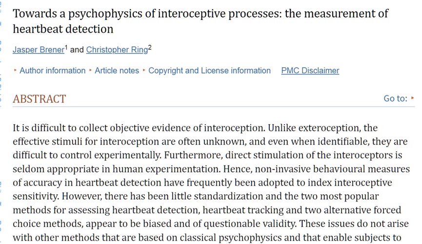 Towards a psychophysics of interoceptive processes: the measurement of heartbeat detection - Προς μια ψυχοφυσική των ενδοαισθητηριακών διεργασιών: η μέτρηση εντοπισμού του καρδιακού παλμού”.