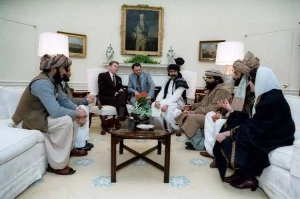 Ο πρόεδρος Ρέιγκαν και ηγέτες των Μουτζαχεντίν από το Αφγανιστάν, δεκαετία του 1980