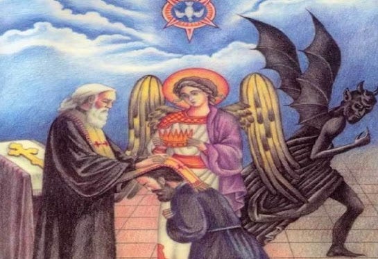 Ο διάβολος, επειδή έχασε τη γνώση του Θεού από αγνωμοσύνη και υπερηφάνεια, έμεινε αναγκαστικά χωρίς γνώση. Γι’ αυτό δε γνωρίζει από μόνος του τι να κάνει, αλλά βλέπει τι κάνει ο Θεός για να μας σώσει και πονηρεύεται και κάνει τα αντίθετα για να χαθούμε. Γιατί μισεί το Θεό και μη μπορώντας να τον πολεμήσει, πολεμά εμάς που είμαστε «κατ’ εικόνα Θεού» (Γεν. 1:26), νομίζοντας ότι με αυτό θα εκδικηθεί το Θεό, και μας βρίσκει υπάκουους στο θέλημά του, όπως λέει ο Χρυσόστομος.