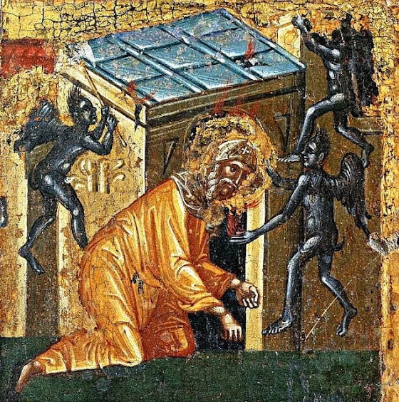Μοῦ ξέφυγες, μὲ νίκησες Ἀντώνιε! Ὄχι ἀκόμα! τοῦ εἶπε, ρίχνοντάς του τὴν χαριστικὴ βολή, μὲ τὸ μέγιστο ὅπλο τοῦ φωτός, ποὺ καίει τοὺς δαίμονες, τὴν ταπείνωση! Μόνο μόλις μπῆκε μέσα στὸν Παράδεισο, ὁ Μέγας Ἀντώνιος εἶπε: Τώρα ναί, μὲ τὴν χάρη τοῦ θεοῦ σὲ νίκησα! Ὡς τὰ τέλη λοιπόν, ὅλα παίζονται! Γιὰ λογαριάστε, πόσο θὰ ἀναθεωρήσουμε, ἂν αὐτὸ κατανοήσουμε! Κανέναν, μὰ κανέναν ἀπολύτως καὶ πρωτίστως τὸν ἑαυτό μας, οὔτε θὰ δικαιώνουμε, ἀλλὰ οὔτε καὶ θὰ καταδικάζουμε, ἀκόμα καὶ ἂν ὅλα εἶναι πρόδηλα ἐνώπιόν μας, ἀκόμα καὶ ἂν γιὰ κάποιον μίλησε μὲ καλὰ λόγια ἕνας σύγχρονος Ἅγιος ἢ γράφτηκε κάτι ἐπαινετικὸ ἢ καὶ ἀρνητικὸ πρὶν ἀπὸ χρόνια, αὐτὸ δὲν ἀποτελεῖ κριτήριο οὔτε γιὰ δικαίωση, οὔτε γιὰ καταδίκη, ἀλλὰ οὔτε καὶ γιὰ μία ὀλέθρια, -ἂς τὸ προσέξουμε αὐτὸ κυρίως στὶς μέρες μας ἀδελφοί μου- ἀμνήστευση...