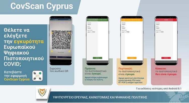 Το κίτρινο χρώμα σήμαινε ότι ο κάτοχος του πιστοποιητικού έχει αρνητικό τεστ (rapid ή PCR).