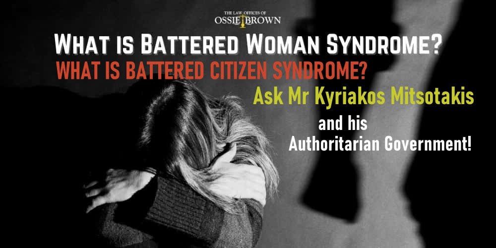 Οι κακοποιητές πολιτικοί γλεντάνε καθημερινά τους κακοποιημένους πολίτες, οι οποίοι έχουν αναπτύξει σύνδρομο αντίστοιχο με εκείνο της κακοποιημένης γυναίκας (battered woman syndrome), που την ξυλοφορτώνει συστηματικά ο τυραννικός σύζυγός της. Έτσι, είναι πλέον αναγκαίο να μελετηθεί και το σύνδρομο του κακοποιημένου (ιδίως του Έλληνα) πολίτη2.