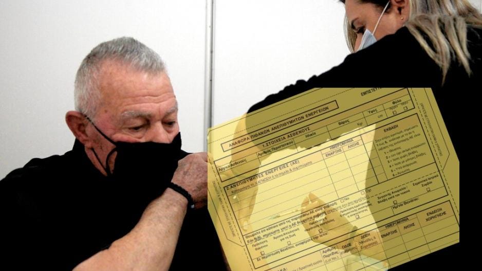 Η κίτρινη κάρτα επελέγη και για τη δήλωση παρενεργειών μετά τον εμβολιασμό, αν και ελάχιστοι τόλμησαν να την συμπληρώσουν, αφού έτσι θα έπρεπε να παραδεχθούν το τραγικό λάθος της επιλογής τους να μετατραπούν σε πειραματανθρώπους!