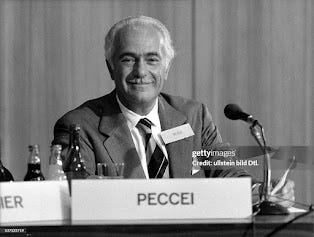 Τι είδους ατζέντα θα χρησιμοποιούσε λοιπόν σε αυτή την κυριαρχία; Τα σχέδια μαλθουσιανής μείωσης του πληθυσμού του Κίσινγκερ προωθούσαν μια στρατηγική «βιώσιμης ανάπτυξης» την οποία με την σειρά της προωθούσε η Λέσχη της Ρώμης, της οποίας ο ιδρυτής, ο αποκρυφιστής Aurelio Peccei (φώτο), ήταν ο κεντρικός ομιλητής στο δεύτερο Παγκόσμιο Οικονομικό Φόρουμ το 1973. Ο οικονομολόγος J.K.Galbraith ήταν ο ομιλητής στο πρώτο, το 1972, προσφέροντας την αξιοπιστία του στο υποστηριζόμενο από τη CIA νέο εγχείρημα του Schwab, το οποίο ξεκίνησε με ένα μάθημα στο Χάρβαρντ που διηύθυνε ο Herman Kahn, «ο πραγματικός Dr. Strangelove». [ΚΟ: Ο εβραϊκής καταγωγής γεννημένος στις ΗΠΑ φυσικός Herman Kahn θεωρείται ένας από τους εξέχοντες “μελλοντολόγους” του 20ου αιώνα. Αρχικά έγινε γνωστός ως θεωρητικός στρατιωτικών συστημάτων κατά τη διάρκεια του Ψυχρού Πολέμου. Ο Καν έθεσε την ιδέα μιας «κερδισμένης» ανταλλαγής πυρηνικών και για αυτό ήταν ο άνθρωπος που εμπνεύστηκε ο Στάνλεϊ Κιούμπρικ για τον χαρακτήρα του Dr. Strangelove στην ομώνυμη ταινία - στα ελληνικά "SOS Πεντάγωνο καλεί Μόσχα" – τον οποίον υποδύθηκε ο Peter Sellers].