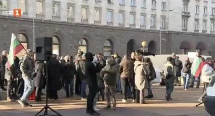 Μέλη του κόμματος της «Αναγέννησης» [Възраждане] διαδήλωσαν μπροστά στο Συνταγματικό Δικαστήριο, το οποίο αναμένεται να συνεδριάσει επί της προσφυγής του κόμματος για το δημοψήφισμα που απέρριψε η Εθνοσυνέλευση για τη διατήρηση του βουλγαρικού εθνικού νομίσματος, λεβ.