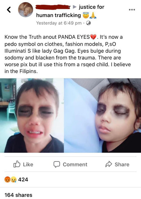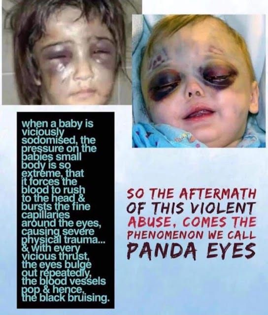 Το αρκουδάκι «Πάντα», είναι ένα παγκόσμιο σύμβολο των παιδοβιαστών. Κι όχι απλά βιαστών παιδιών. Είναι εκείνων που ηδονίζονται με το να βιάζουν και να κακοποιούν παιδιά, προκαλώντας τους ειδεχθή και απάνθρωπα τραύματα, μέχρι θανάτου. Πρόκειται για το γνωστό «panda eyes»…